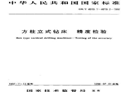 本标准是对GB4019--83方柱立式钻床精度>的能订,修订时等短采国际标准1S02772-2:1974(方柱立式帖床——糖度检验一—第2部分,工作精度拉验1(1991年确认?。GB4019在《方桂立式钻床精度检验>总怀题,期分为两个部分,第1分GB,T40191