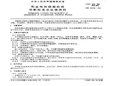局部振动病是长期使用振动工具而引起的以末梢循环障碍为主的疾病,亦可累及肢体神经及运动功能。发病部位一般多在上肢末端,其典型表现为发作性手指变白。 GB 4869-1985 职业性局部振动病诊断标准及处理原则 GB4869-1985 标准下载解压密码:www.bzxz.net