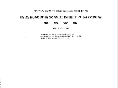 YBJ 213-1988 冶金机械设备安装工程施工及验收规范 烧结设备 YBJ213-1988 标准下载解压密码:www.bzxz.net