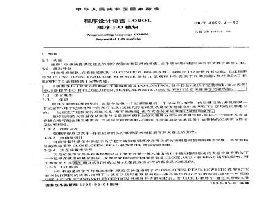 GB/T 4092.4-1992 程序设计语言COBOL 顺序I-O模块 GB/T4092.4-1992 标准下载解压密码:www.bzxz.net