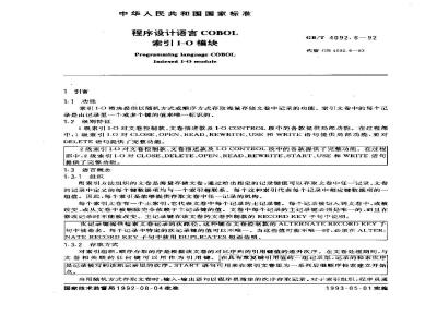 GB/T 4092.6-1992 程序设计语言COBOL 索引I-O模块 GB/T4092.6-1992 标准下载解压密码:www.bzxz.net