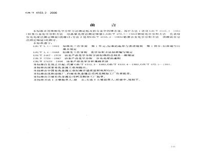 GB/T1467--1978治金产品化学分析方法标准的总则及--般规定GB/T7729---1987冶金产品化学分析分光光度法通则GB/T17433·1998治金产品化学分析基础术语本标准自生效之日起,代替GB/T4103.3-1983.GB/T4103.4—-1983、GB/T472.5--1984,本标准由国家有色金属工业局提出。本标准由中国有色金属工业标准计量质量研究所归口。本标准由沈阳冶炼厂、自银有色金属公司曲北铜加工厂负责起草。本标准出白银有色金属公司西北铜加工广起草。本标摊方法1主要起草人:赵义;方法2主要起草人;於建中、杨平。105