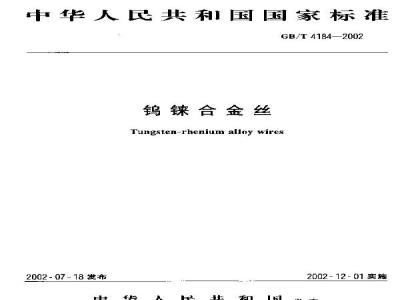 Tungsten-rheuinra alloy wiresCB/T4184—2002