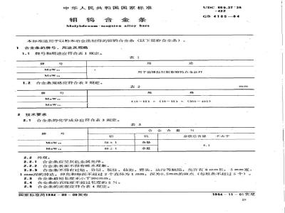 GB/T 4185-1984 钼钨合金条 GB/T4185-1984 标准下载解压密码:www.bzxz.net