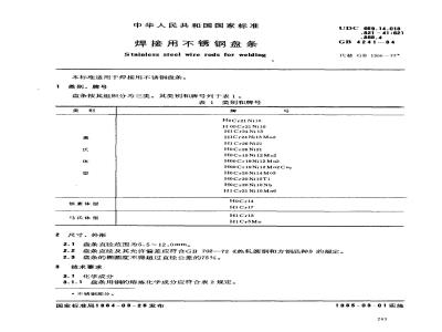 本标准适用于焊接用不锈钢盘条。 GB/T 4241-1984 焊接用不锈钢盘条 GB/T4241-1984 标准下载解压密码:www.bzxz.net