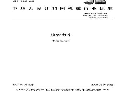 本标准代替JB/T6277.1—1992《胶轮力车:型式与基本参数》和JB/T6277.2—1992《胶轮力车技术条件》。