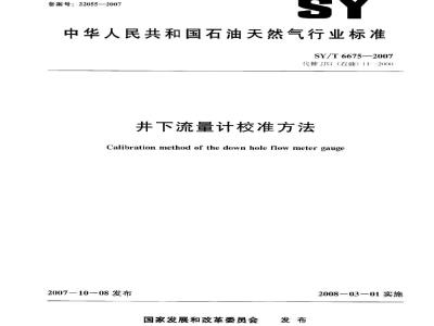 SY/T 6675-2007 井下流量计校准方法 SY/T6675-2007 标准下载解压密码:www.bzxz.net