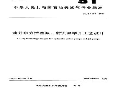 SY/T 6694-2007 油井水力活塞泵、射流泵举升工艺设计 SY/T6694-2007 标准下载解压密码:www.bzxz.net