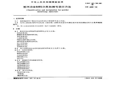 1.2凡列人国家标准和专业标准(部标准)的粉未冶金材料都应按本标准的规定进行分类和编制牌号。