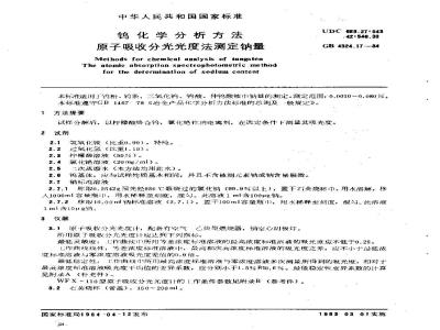 GB/T 4324.17-1984 钨化学分析方法 原子吸收分光光度法测定钠量 GB/T4324.17-1984 标准下载解压密码:www.bzxz.net