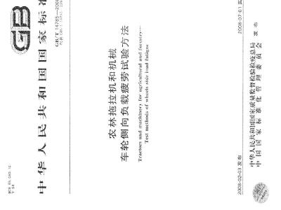 中文名称:农林拖拉机和机械 车轮侧向负载疲劳试验方法