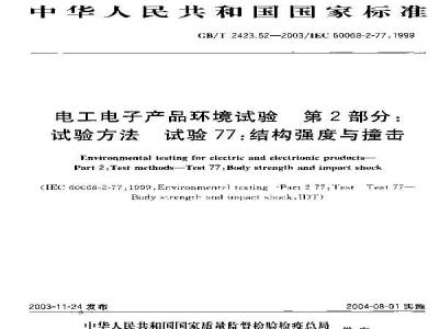 Environmental testing for electric and electrionic pruductsPart 2:Test methods-Test 77 :Body s1rength and impact shu:k(IEC: 6oc68-2-7711999,Ervironnentl testin -Part 2 77:Test Teat 77-Bndy x.rengl an inpaet snoek.y)2003-11-24发布