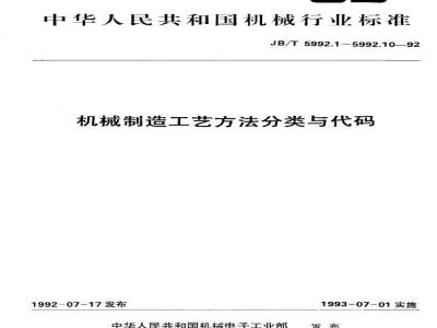 焊接工艺方法小类的划分及代码按表1的规定,5焊接工艺方法细分类的划分及代码焊接工艺方法细分类的划分及代码按表2的规定。机械电子工业部1992-07-17批准10