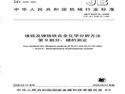 中文名称:镍铬及镍铬铁合金化学分析方法 第9部分:磷的测定