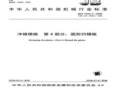 JB/T7643《冲模模板》分为六个部分:第1部分:矩形凹模板;