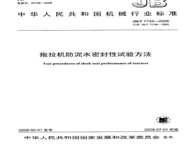 本标准规定了拖拉机防泥水密封性试验方法。JB/T7734--2008