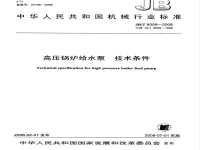 本标准代替JB/T8059—1996《高压锅炉给水泵技术条件》。本标准与JB/T80591996相比,主要变化如下:修改了标准的适用范围: