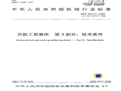 万能工具磨床第3部分:技术条件JB/T3875的本部分规定了万能工具磨床的制造与验收技术要求。JB/T3875.3-2007