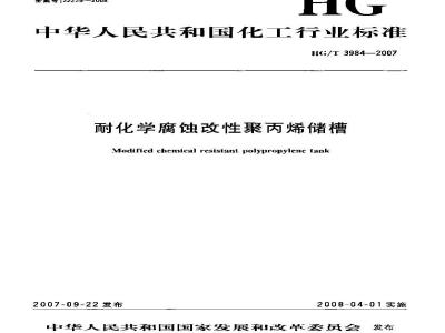 本标准由中国石油和化学工业协会挺出。本标准由全国非金属化工设备标准化技术委员会归口。本标准起草单位:浙江省建德市三耐防腐钢结构有限公司。本标准主要起草人:杜洪声、林建平、许雪良、林渐渭、王丽娟HG/T3984—2007