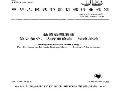 JBT407[《轴承套圈磨床》分为四个部分:第【部分:外表面磨床精度检验-第2部分:内表而魔床精度检验:一第3部分:技术条件: