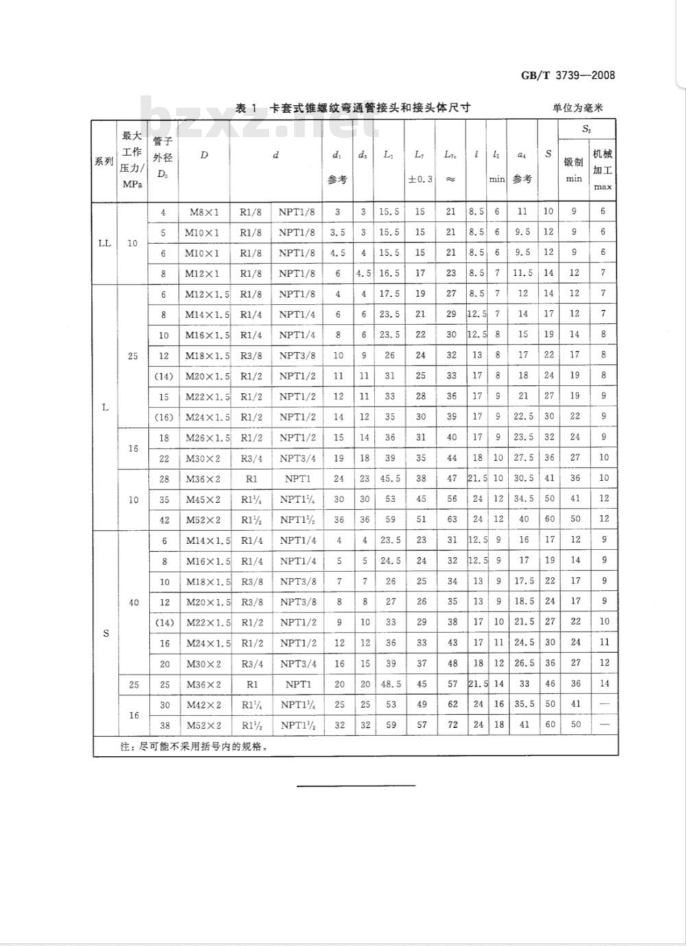 代替GB/T3739.1—1983,GB/T3739.2—1983卡套式锥螺纹弯通管接头