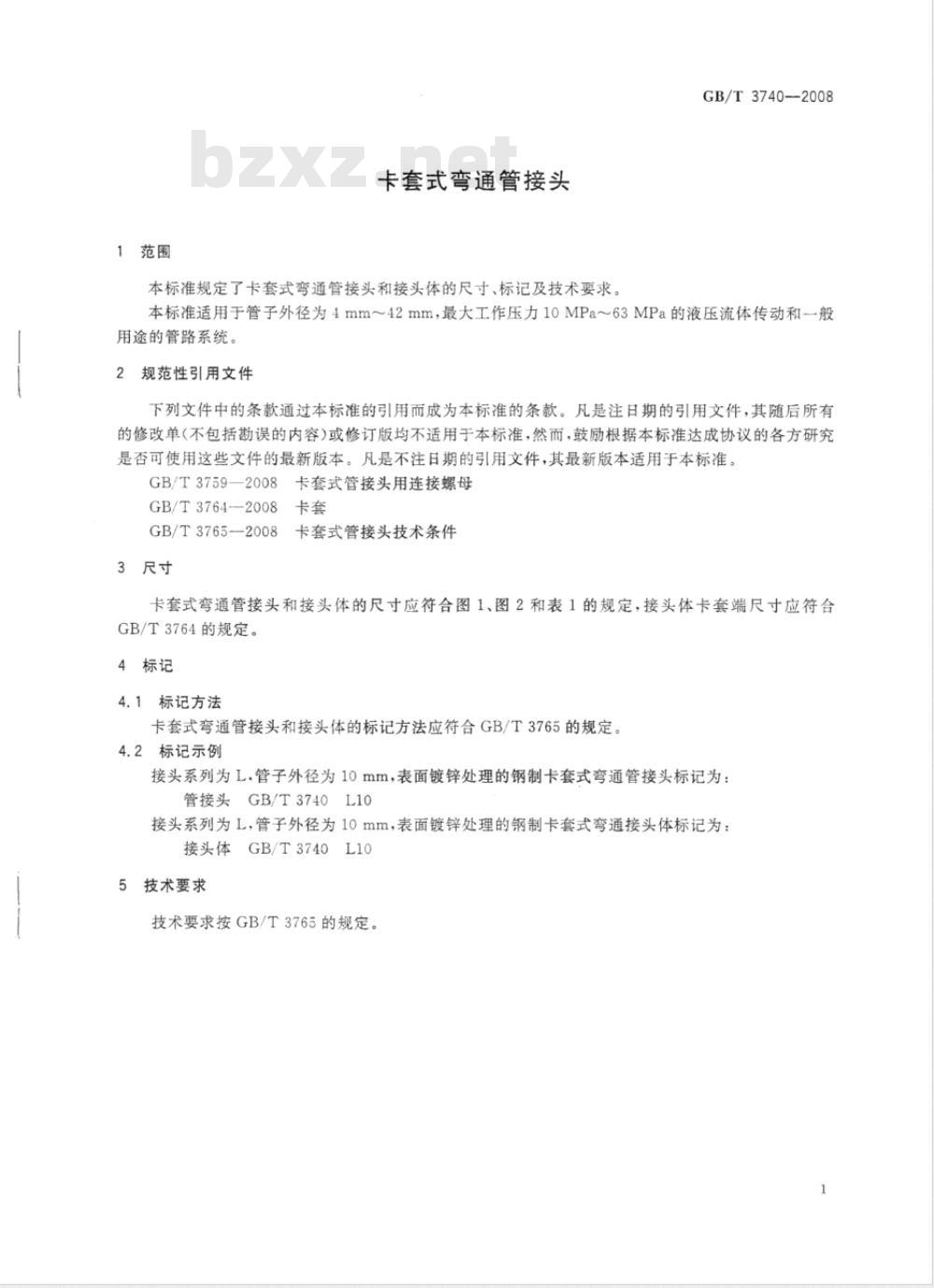 本标准规定了卡套式弯通管接头和接头体的尺寸、标记及技术要求。GB/T3740—2008