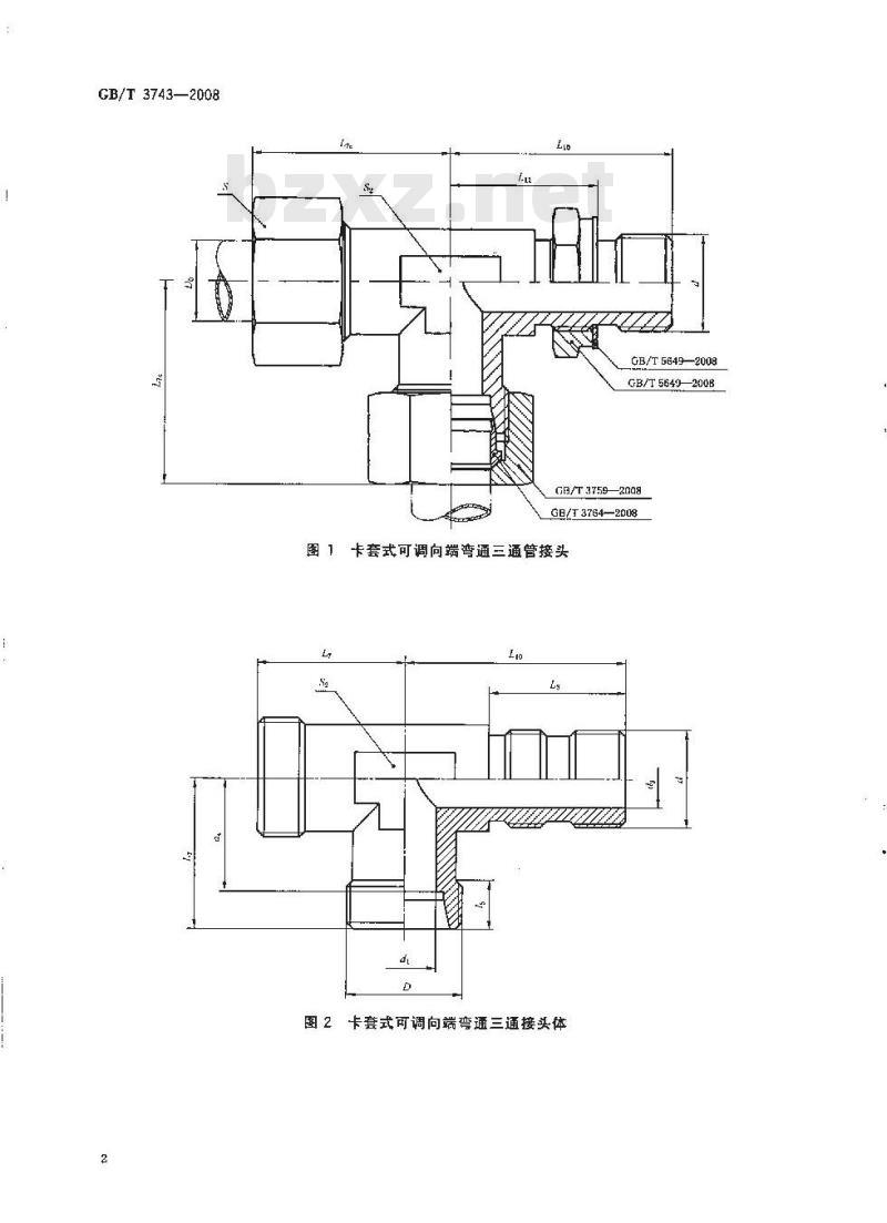 代替GB/T 3743.1—1983,GB/T 3743.2—1983卡套式可调向端弯通三通管接头24° cone connectors-Straight thread run tee2008-05-07发布