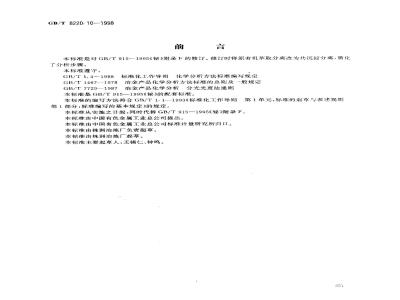 GB/T1.4—1988标准化工作导则化学分析方法标准编写规定GB/T1467-1978冶金产品化学分析方法标准的总则及般规定GB/T7729—1987治金产品化学分析分光光度法通则本标准是GB/T915—1995《铋》的配套标准。本标准的编写方法符合GB/T1.1一1993《标准化工作导则第1单元:标准的起草与表述规则第1部分:标准编写的基本规定》的规定。本标准从实施之日起,同时代替GB/T915—1995《铋》附录F。本标准由中国有色金属工业总公司提出。本标准由中国有色金属工业总公司标准计量研究所归口。本标准由株洲冶炼厂负责起草。本标准由株洲冶炼厂起草。