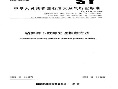 代告 SY/T5247—1997,SY/T 52481991,SY/T5271—2000SY/T 53571999.SY/T5409—1991.$Y/T541(—1991,SY/T5558—1992$Y/T5780-1993,SY/T5910—1994,SY/T60491994钻井井下故障处理推荐方法