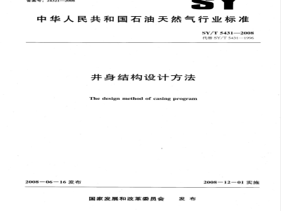 将SY/T5431一1996的第8章“设计结果”变为本版的第12章“设计结果输出格式”,并对设计结果输出格式作了调整;增加了附录A,规定了自下而上设计方法的设计步骤;增加了附录B,规定了自上而下设计方法的设计步骤。本标准的附录A和附录B为规范性附录。本标准由石油钻井工程专业标准化委员会提出并归口。本标准起草单位:中国石化集团胜利石油管理局钻井工艺研究院。本标准主要起草人:邵长明、施亚楠、严新新、高凯、李斌、姜兰其、王介坤。本标准所代替标准的历次版本发布情况为:SY5431—1991,SY/T5431—1996。I
