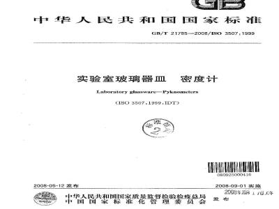 GB/T 21785--2008/1S0 3507:1999本标准等同采用ISO3507:J.999实验室玻璃器Ⅲ密度计》(英文版)。本标推附暴A为资料性附录