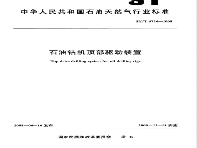 本标准适用于石油钻机顶部驱动装置的设计、制造和检验。 SY/T 6726-2008 石油钻机顶部驱动装置 SY/T6726-2008 标准下载解压密码:www.bzxz.net