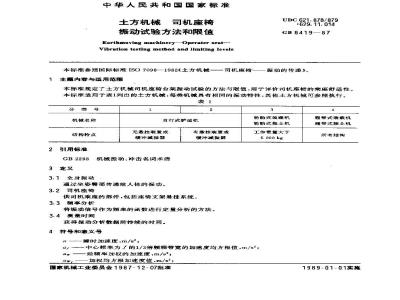 GB/T 8419-1987 土方机械 司机座椅 振动试验方法和限值 GB/T8419-1987 标准下载解压密码:www.bzxz.net