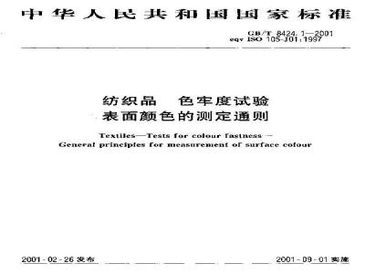 G/84241937进修修订后的文本举效IS0125-J01157.本次修计对GB8424一1标准要做广如下效改:厂参原国际标雅[S010F-J31,1997的.名将限名称《织品覆含和色差测定3收为纳织导色年度验表面颜色的测定通以: