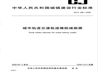 本标准规定了城市轨道交通轨道橡胶减振器的要求、试验方法、检验规则、标志、包装、运输和贮存。本标准适用于城市轨道交通轨道橡胶减振器的生产和检验 CJ/T 286-2008 城市轨道交通轨道橡胶减振器 CJ/T286-2008 标准下载解压密码:www.bzxz.net