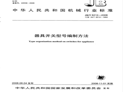 本标准代替JB/T6212—1992《器具开关本标准与JB/T6212—1992相比,主要变化如下:JB/T6212-2008