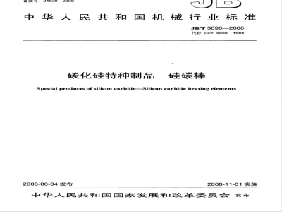 增加了GDI-b型、II型、II型硅碳棒各发热部表面发热温度偏差要求(本标准的4.5.2);-增加了硅碳棒发热部体积密度的要求(本标准的4.6.1);增加了硅碳棒发热部碳化硅含量的要求(本标准的4.7);修订并完善了检验规则(JBT3890一1999的6:本标准的6)。本标准的附录A、附录B为规范性附录,附录C为资料性附录。本标准由中国机械工业联合会提出。本标准由全国磨料磨具标准化技术委员会(SAC/TC139)归口。本标准由西安临潼硅碳棒厂负责起草,山东八三碳化硅热件厂、山东省潍北硅碳棒厂等参加起草。本标准主要起草人:房向颖、陈国蓉、安国、孙建华。本标准所代替标准历次版本发布情况:JB3890—1985,JB/T3890—1999;-JB3895—1985。