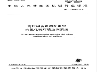 本标准规定了高压组合电器配电室六氟化硫环境监测系统的组成与命名、技术要求、试验方法和检验规则、包装、标志、运输和贮存。本标准适用于电厂、变电站的高压开关配电室以及高压开关生产车间环境中监测六氟化硫浓度、氧气含量、温度、湿度的监测系统。 JB/T 10893-2008 高压组合电器配电室六氟化硫环境监测系统 JB/T10893-2008 标准下载解压密码:www.bzxz.net
