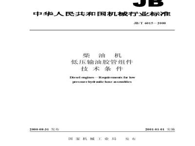 Diesel mginesRequirenents for lowpressurehydraulichoseassembliesJB/T6015-2000