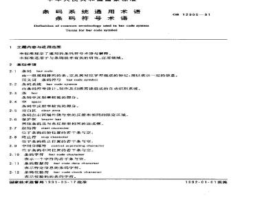 本标准规定了通用的条码符号术语与解释。本标准适用于与条码技术有关的研究、应用领域。 GB/T 12905-1991 条码系统通用术语 条码符号术语 GB/T12905-1991 标准下载解压密码:www.bzxz.net