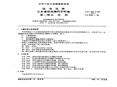 信息处理交换用的七位编码字符集信息处理交换用七位编码字符集的扩充方法信息交换用汉字编码字特集基本集文字和符号成形设备用的增补控制功能信息交换用议字编码字符集第二辅助集信息交换用汉字编码字符集第四辅助集信息处理交换用蒙古文七位和八位编码图形字符集GB 8565.2