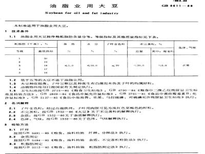 本标准适用于油脂业用大豆。 GB/T 8611-1988 油脂业用大豆 GB/T8611-1988 标准下载解压密码:www.bzxz.net