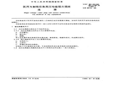 本标准适用于医用X射线设备的三芯和四芯高压电缆插头插座,该部件为医用X射线设备的高压接插件。本标准等效采用国际标准IEC 526(1978)《医用X射线设备高压电缆插头插座的连接》。 GB 5579-1985 医用x射线设备高压电缆插头插座连接 GB5579-1985 标准下载解压密码:www.bzxz.net