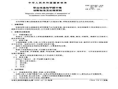 GB 8791-1988 职业性急性甲醛中毒诊断标准及处理原则 GB8791-1988 标准下载解压密码:www.bzxz.net