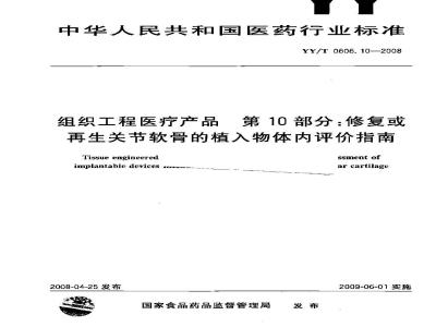 中文名称:组织工程医疗产品 第10部分:修复或再生关节软骨植入物的体内评价指南