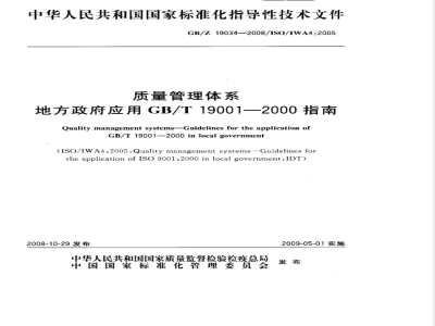 英文名称:Quality management systems - Guidelines for the application of GB/T19001-2000 in local government