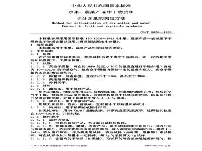 MethodfordeterminationofdrymatterandwaterContent infruit and vegetableproductsGB/T8858—1988