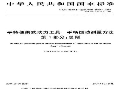 GB/T8910.1—2004/IS0 8662-1:198B手持便携式动力工具:手柄振动测:方法第1部分,总