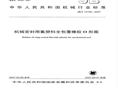 机械密封用氟塑料全包覆橡胶O形圈JB/T10706-2007