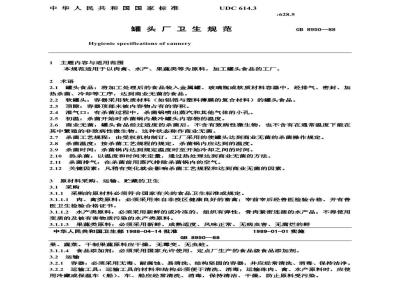 本规范适用于以肉禽、水产、果蔬类等为原料,加工罐头食品的工厂。 GB 8950-1988 罐头厂卫生规范 GB8950-1988 标准下载解压密码:www.bzxz.net